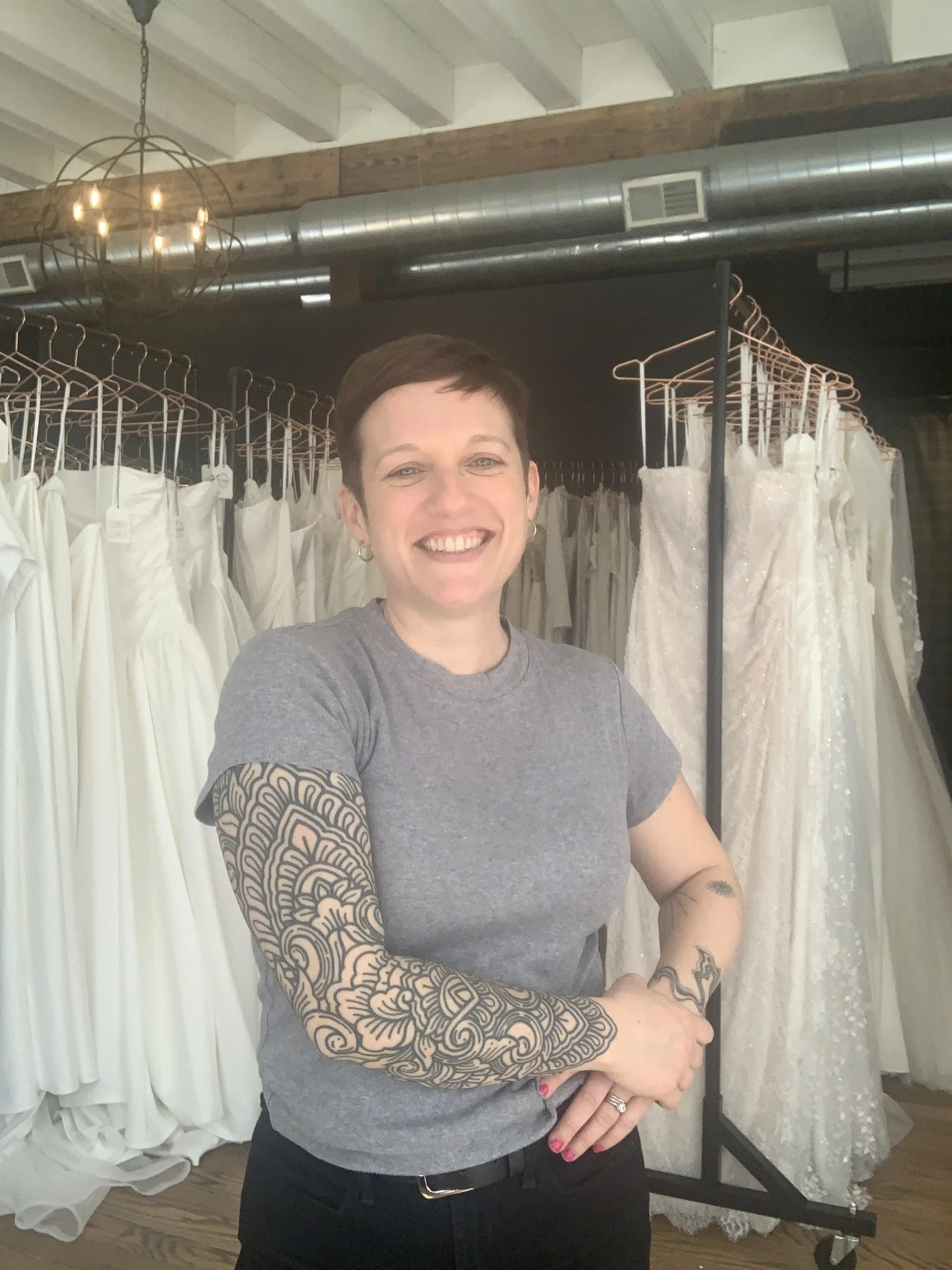 #2: Hanna can do alterations on lots of garments and she loves a custom project! Like adding off the shoulder drapes to a dress, adding embellishments, changing the neckline/backline, etc, etc!